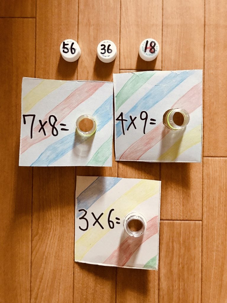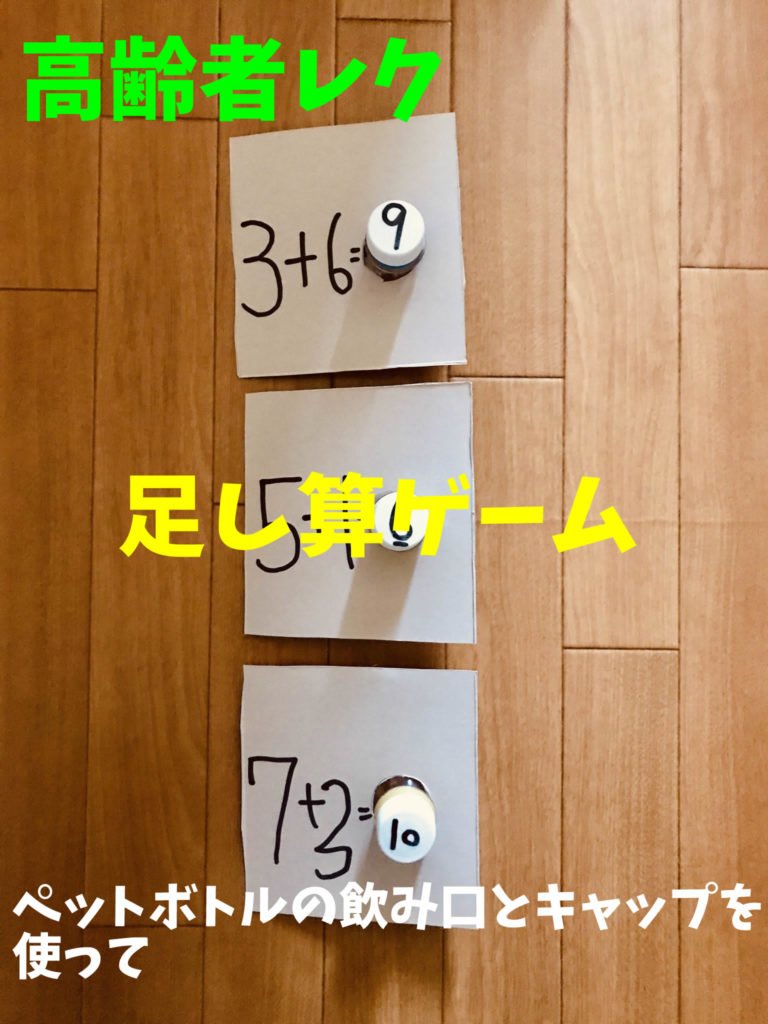 ペットボトルキャップ 【高齢者室内レクリエーション】ペットボトルの飲み口とキャップを使って『足し算ゲーム』