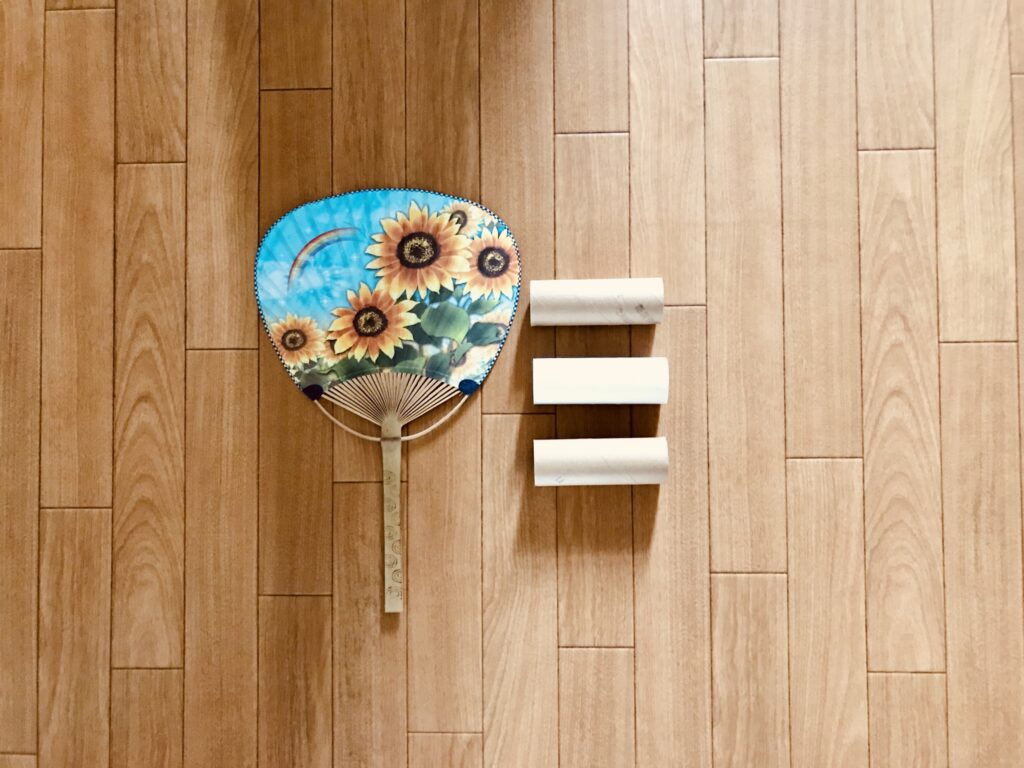 うちわ お家でできる【高齢者(デイサービス・老人ホーム)室内レクリエーション】トイレットペーパーの芯とうちわを使って『扇ぎ落としゲーム』