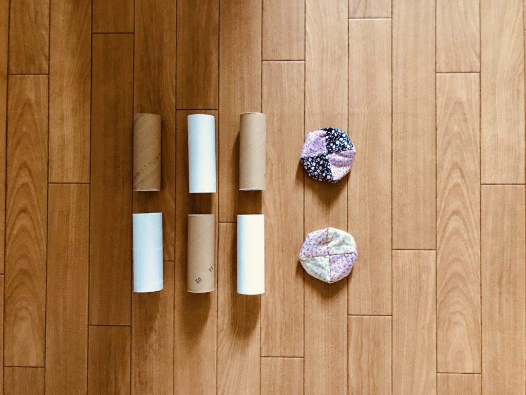 トイレットペーパーの芯 お家でできる【高齢者(デイサービス・老人ホーム)室内レクリエーション】トイレットペーパーの芯とお手玉を使って『お手玉ボウリング』