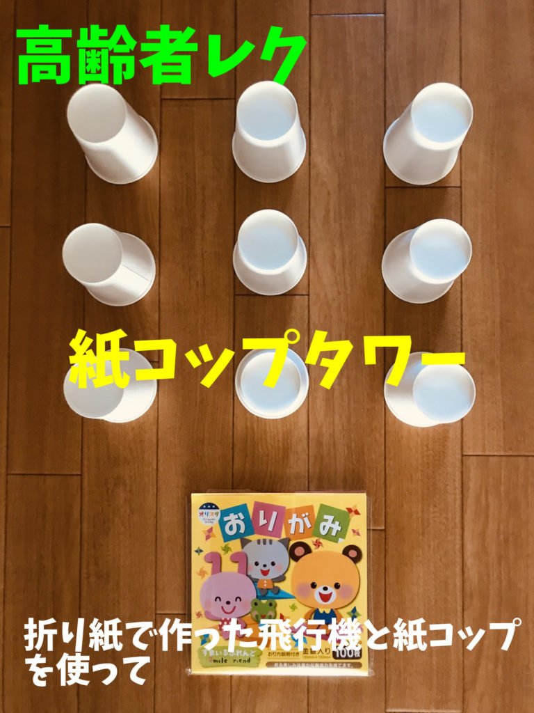 5月 座ってできる【5月の高齢者(デイサービス・老人ホーム)レクリエーション】折り紙で作った飛行機と紙コップを使って『紙コップタワー』