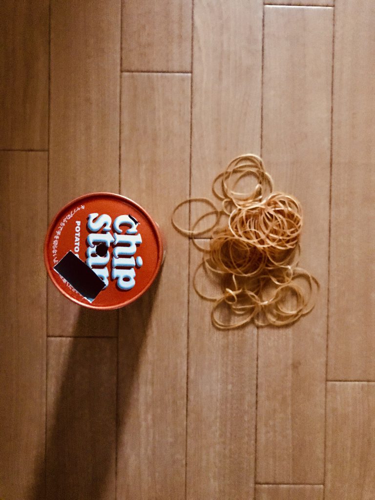 輪ゴム 高齢者(在宅介護)レクリエーションでチップスターの空き箱を使って簡単『輪ゴム入れゲーム』を母親と一緒にやってみました