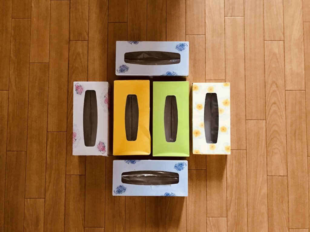 ティッシュ箱 お家でできる【デイサービスレクリエーション】ティッシュ箱を使って『ティッシュ箱落とし』