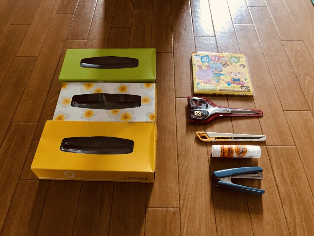 ティッシュ箱 【高齢者工作】ティッシュ箱と折り紙を使って『引き出し付き小物入れ』