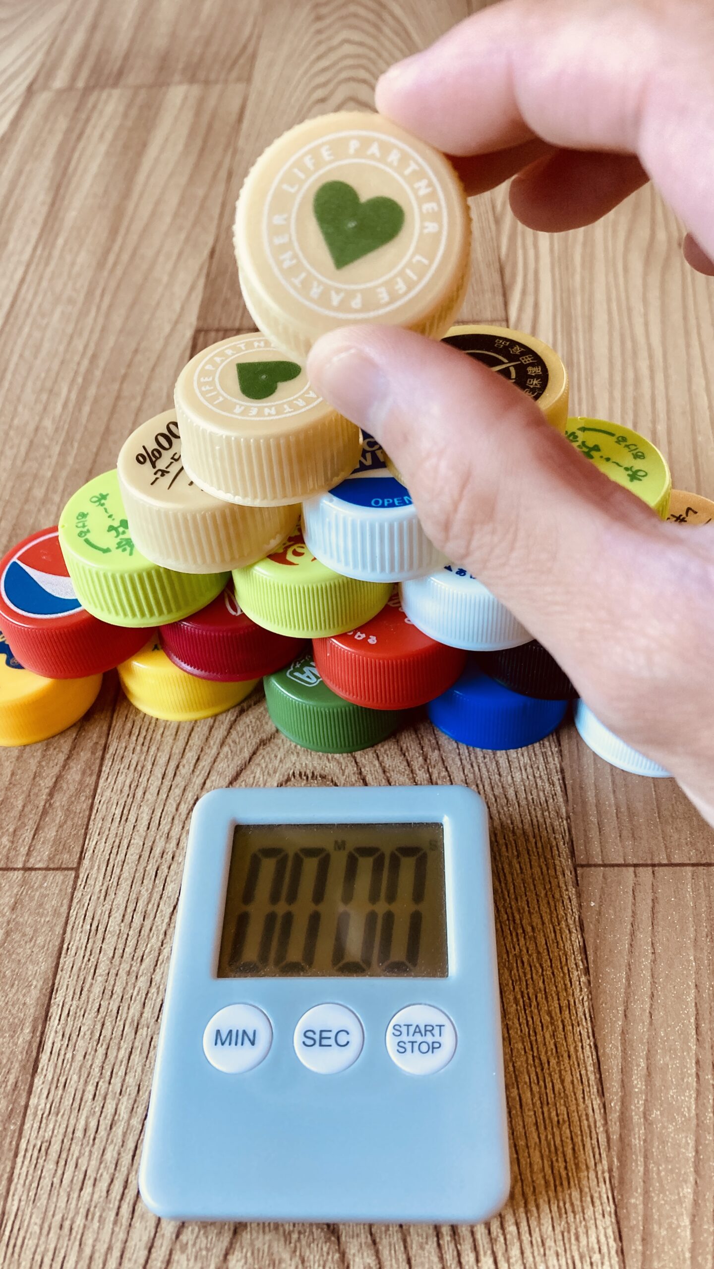 レクリエーション対決一覧 対決 2022.04.19 著者:ちびいけ(高齢者レクリエーション介護士) 新記録更新5秒【子ども室内レクリエーションゲーム】ペットボトルキャップを使って『3段ピラミッド競争 chibiike対rakurec対決』用意するもの ペットボトルキャップ タイマーやり方ペットボトルキャップを6つピラミッド状じょうに積つむタイムを計はかるゲームです。chibiikeとのタイム勝負しょうぶでもあります。(^^)動画(chibiikeターン)14秒(rakure