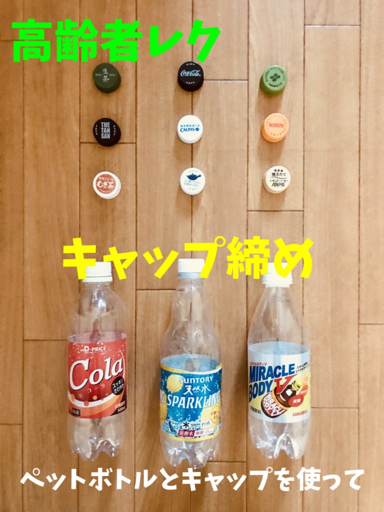 ペットボトル 【デイサービスレクリエーション】ペットボトルとキャップを使って『ペットボトルキャップ締め』