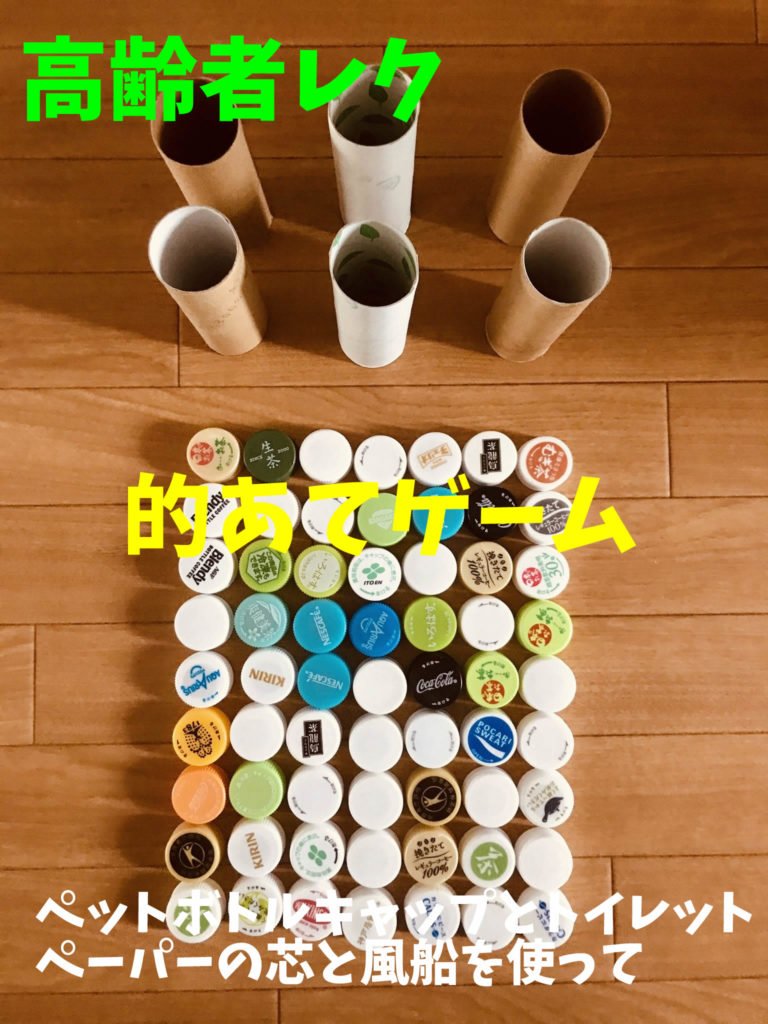ペットボトルキャップ 【高齢者レクリエーション】ペットボトルキャップとトイレットペーパーの芯と風船を使って『的あてゲーム』