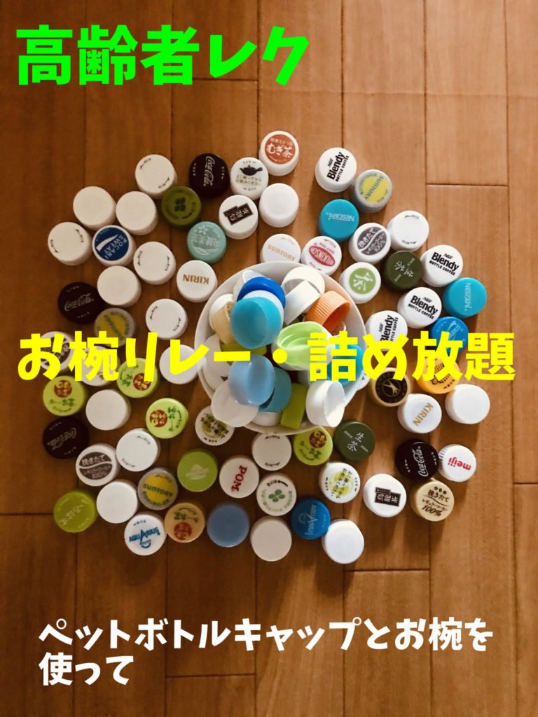 ペットボトルキャップ 【認知症レク】ペットボトルキャップとお椀を使って『お椀リレー』『詰め放題ゲーム』