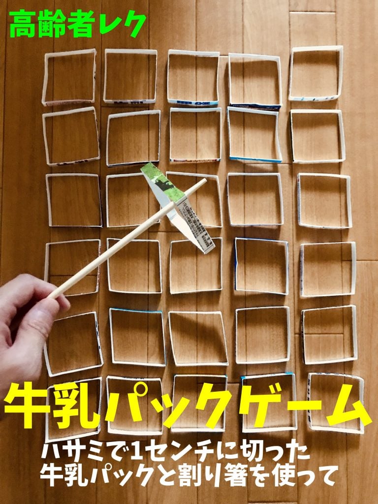 牛乳パック 【高齢者室内レクリエーション】利き手と逆の手で割り箸を使って『牛乳パックすくいゲーム』