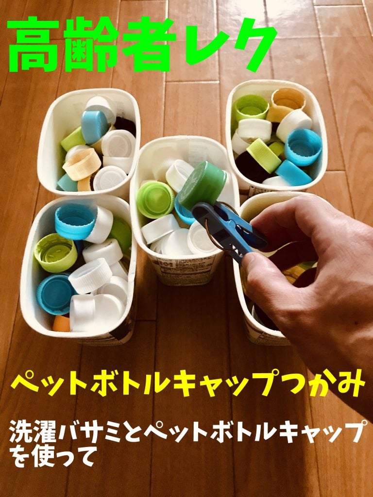 ペットボトルキャップ 利き手と逆の手で洗濯バサミとヨーグルトの容器を使って『ペットボトルキャップつかみゲーム』【高齢者室内レクリエーション】