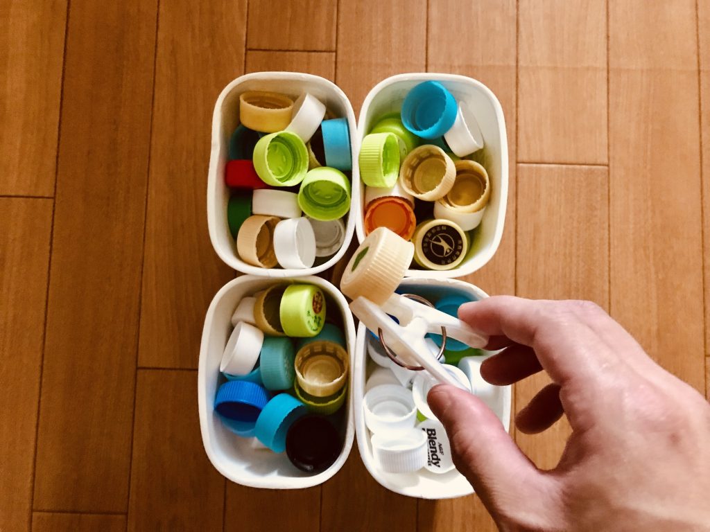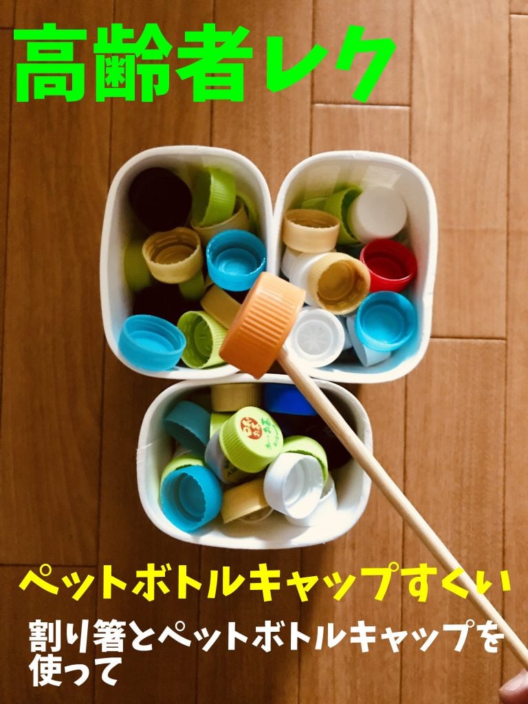 ペットボトルキャップ 【高齢者レクリエーションアイデア・ネタ】ヨーグルトの容器と割り箸を使って『90個ペットボトルキャップすくいゲーム』