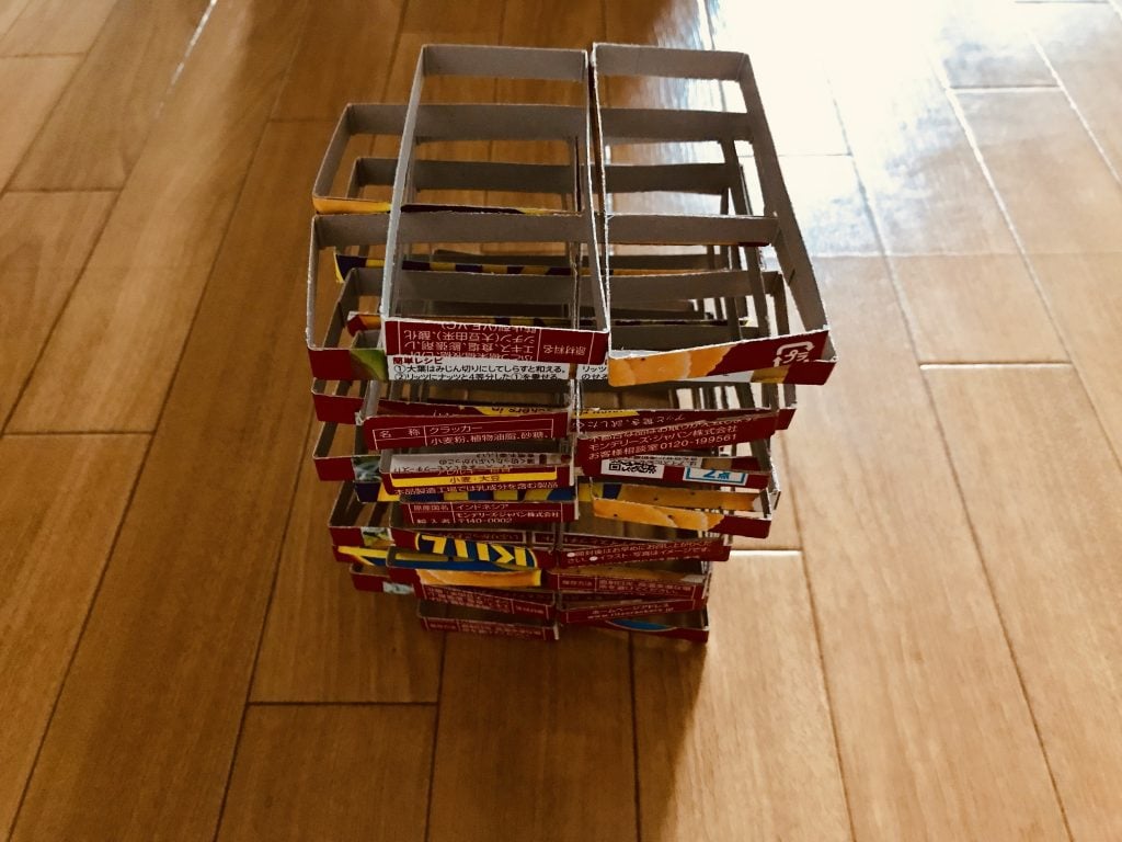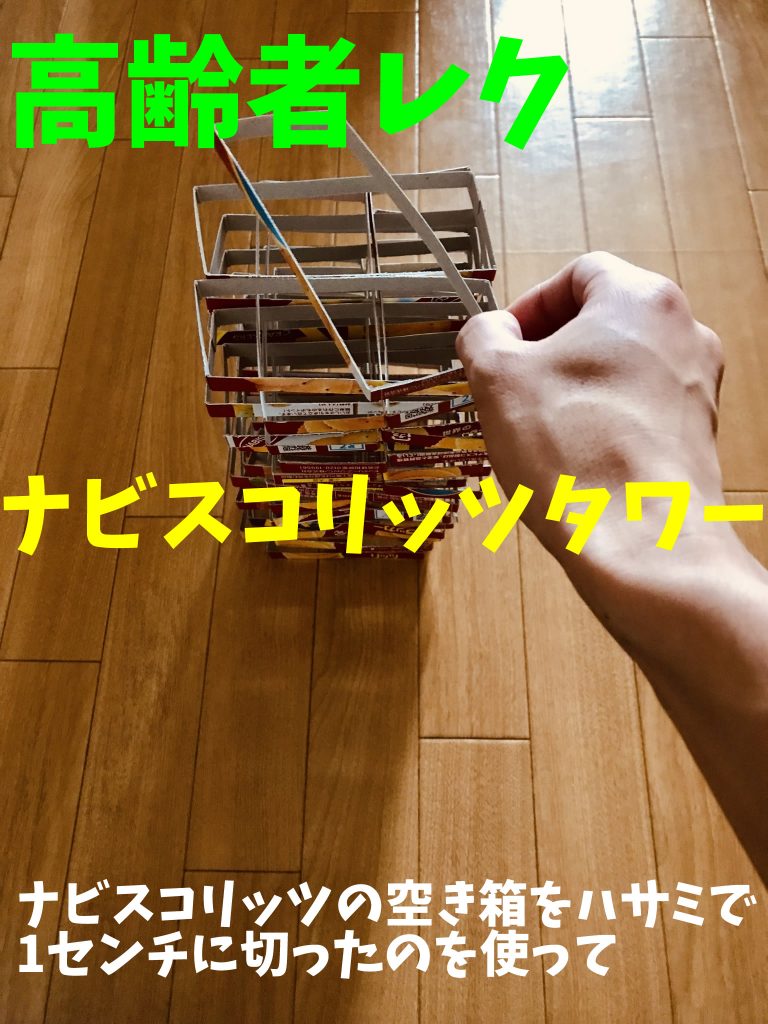 高齢者レクリエーション 【高齢者室内レクリエーションアイデア・ネタ】ナビスコリッツの空き箱を使って『45個積み上げゲーム』