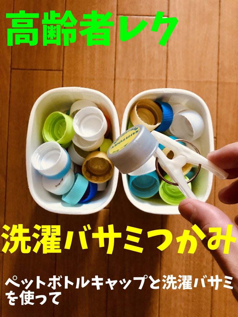 ペットボトルキャップ 【高齢者室内レクリエーションアイデア・ネタ】ヨーグルトの容器と洗濯バサミを使って『60個ペットボトルキャップつかみゲーム』