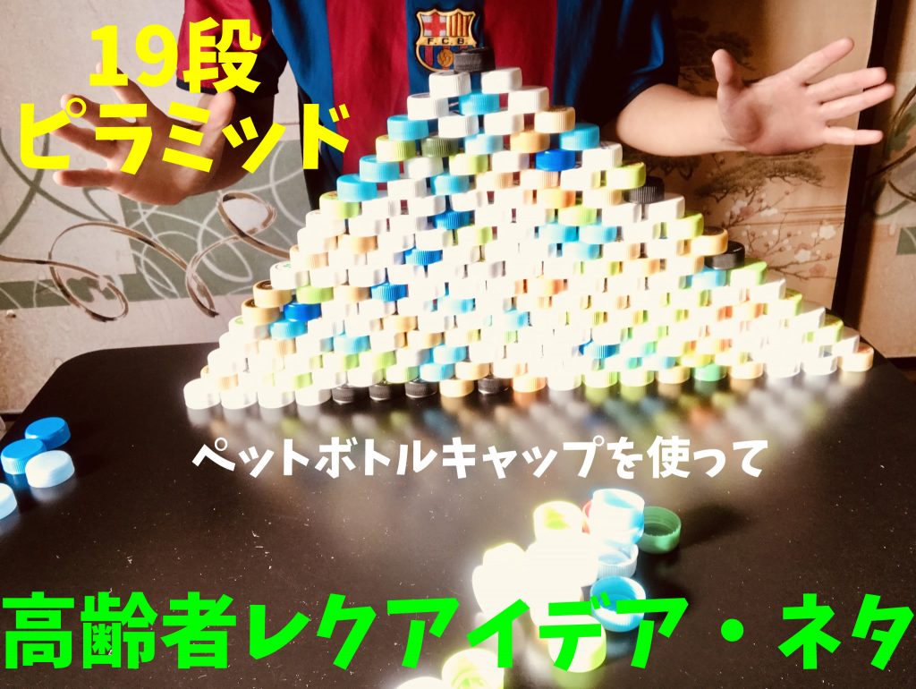 ペットボトルキャップ 19段自己新記録達成!!【高齢者室内レクリエーションアイデア・ネタ】ペットボトルキャップを使って『ピラミッドゲーム』