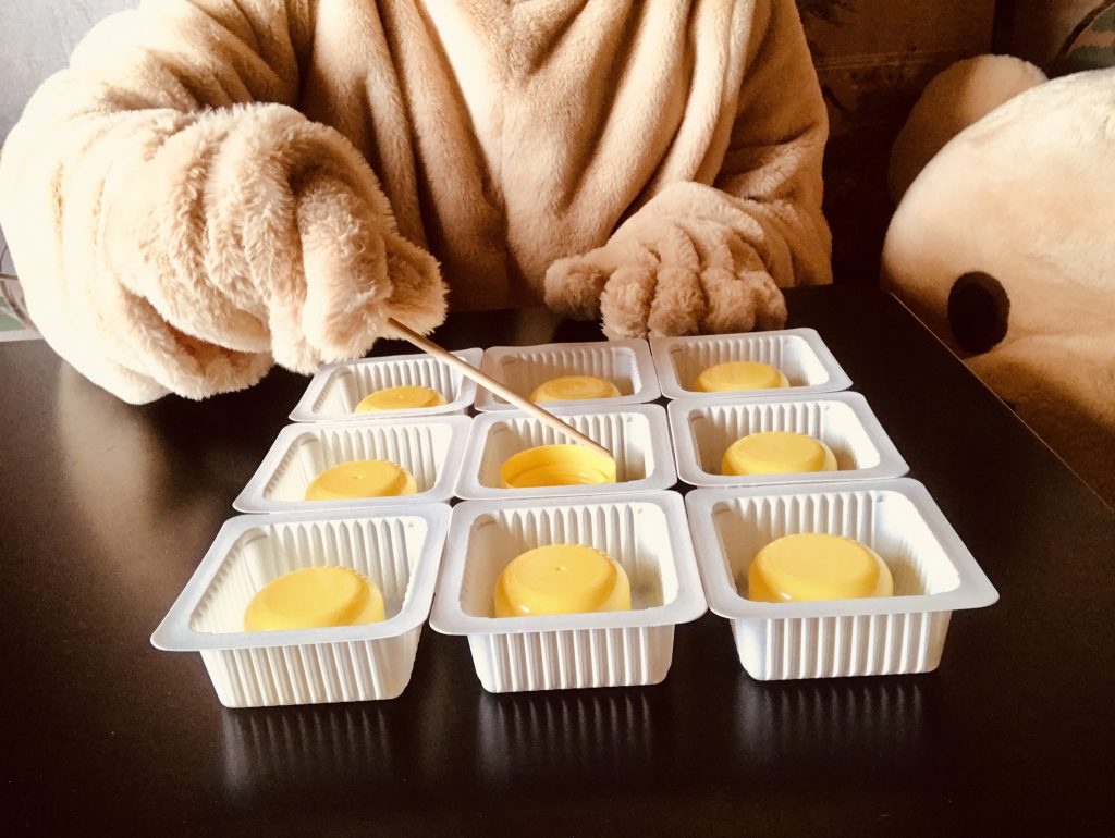高齢者レクリエーション 【高齢者(在宅介護)室内レクリエーション】ドレッシングキャップとお豆腐の容器と割り箸を使って『9個大たこ焼きゲーム』に挑戦してみた【chibiikeくま】