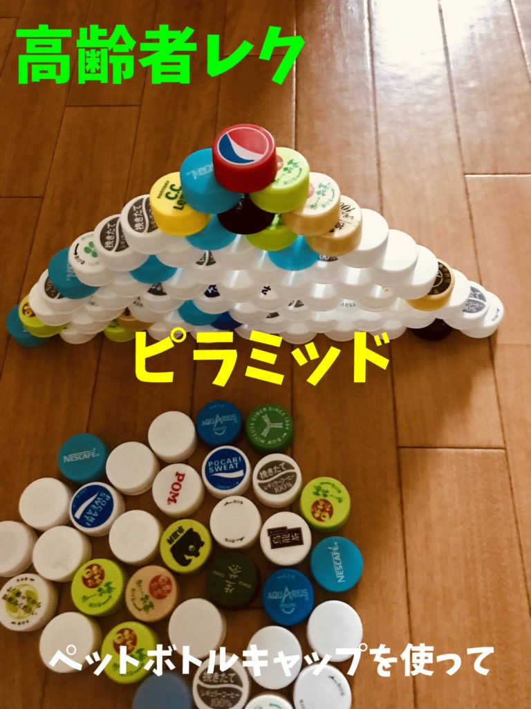 ペットボトルキャップ 【高齢者室内レクリエーション】ペットボトルキャップを使って『11段ピラミッド積み上げゲーム』