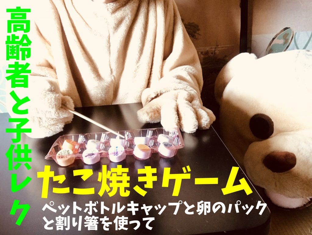 高齢者レクリエーション 【高齢者と子供向け室内レクリエーション】ペットボトルキャップと卵のパックと割り箸を使って『たこ焼きゲーム』【chibiikeくま】