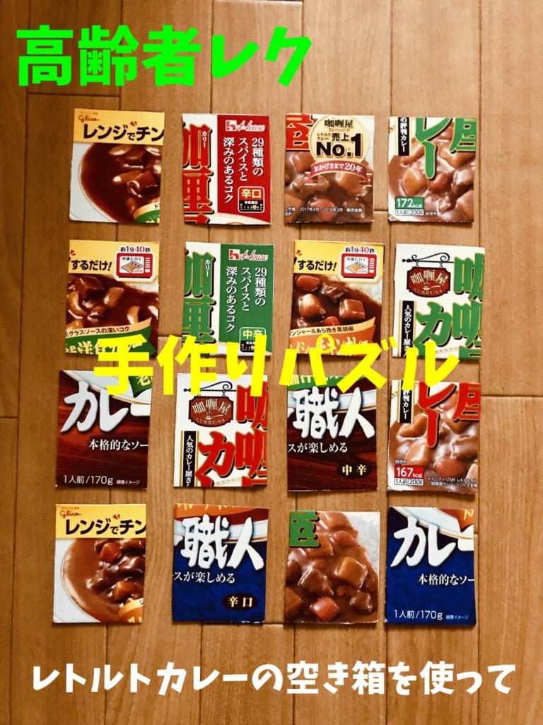 高齢者レクリエーション 【高齢者室内レクリエーション】レトルトカレーの空き箱を使って『4箱手作りパズル』