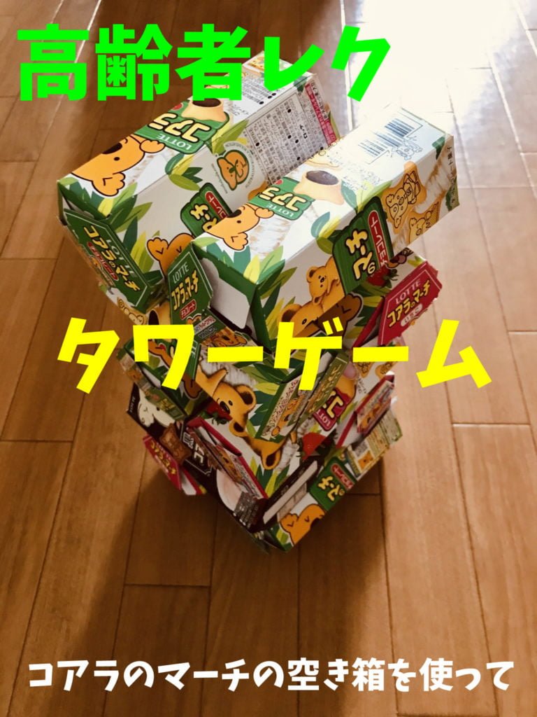 高齢者レクリエーション 【高齢者室内レクリエーション】コアラのマーチの空き箱を使って『タワーゲーム』