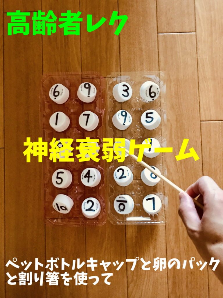 ペットボトルキャップ 【高齢者室内レクリエーション】ペットボトルキャップと卵のパックと割り箸を使って『20個神経衰弱ゲーム』
