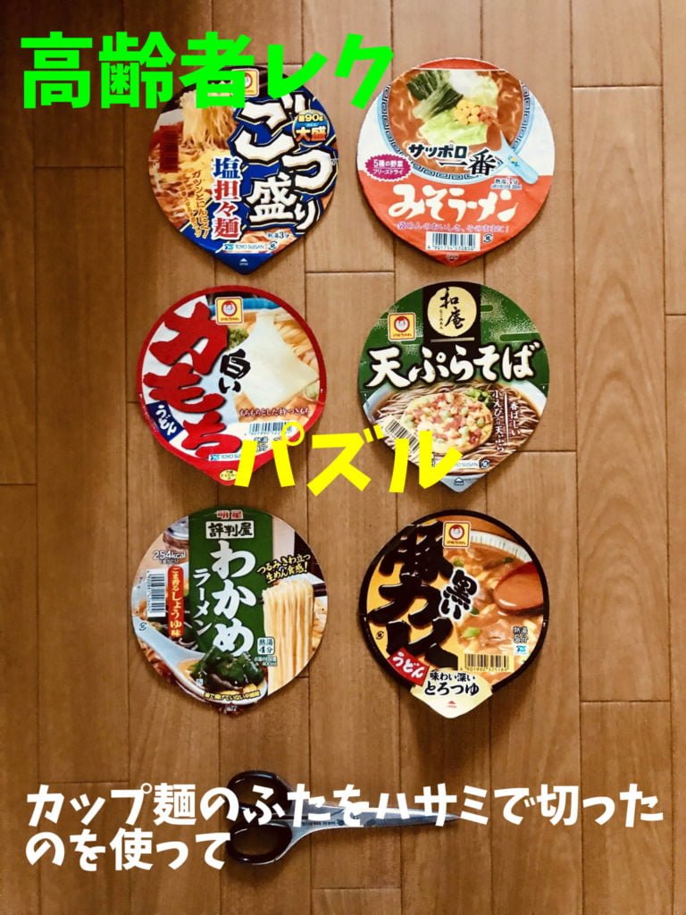 高齢者レクリエーション 【高齢者(シニア)向け無料手作りジグソーパズル】レトルトカレーの空き箱・カップ麺のふたを使用
