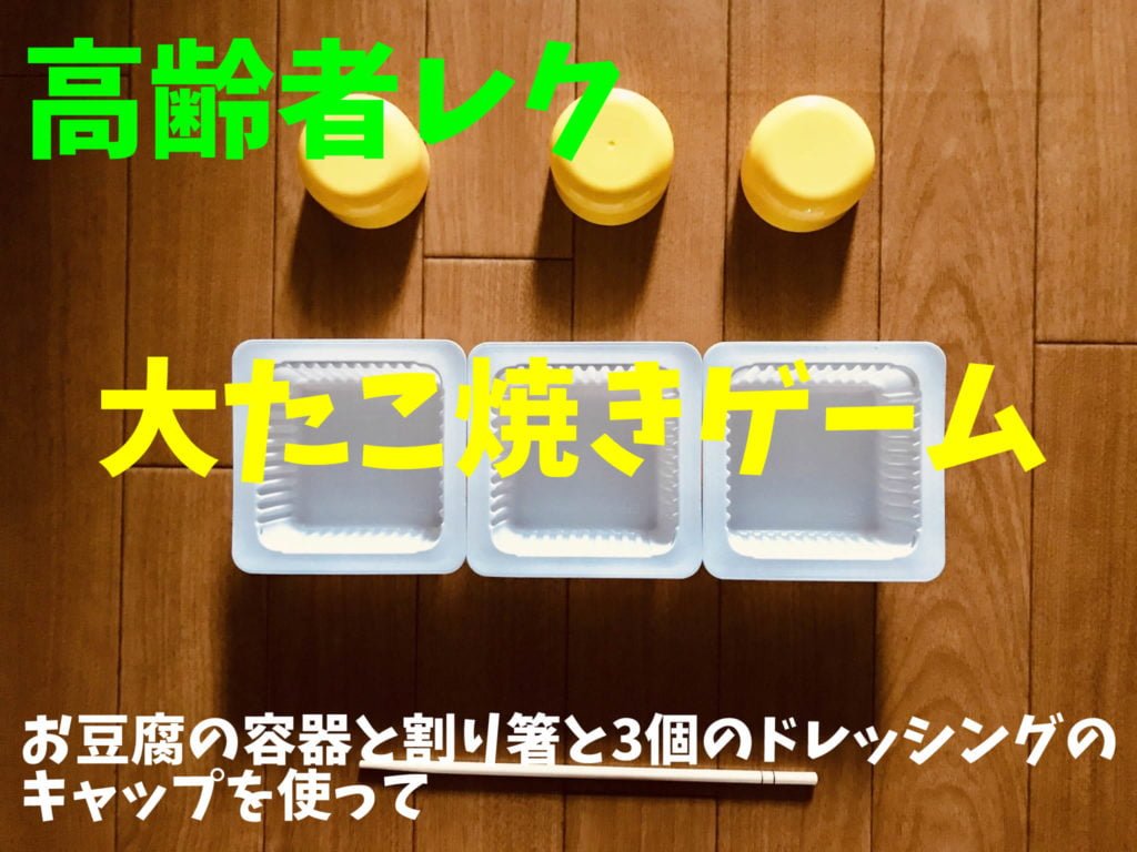高齢者レクリエーション 【高齢者室内レクリエーション】ドレッシングのキャップとお豆腐の容器と割り箸を使って『3個大たこ焼きゲーム』