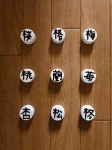 ボードに書かれた植物の漢字、国旗、九九の答えにペットボトルキャップを合わせていくゲームです☆