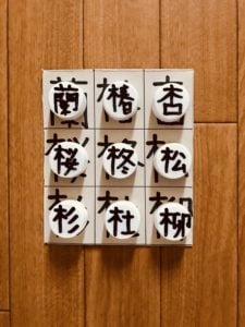 レトルトカレーの空き箱をハサミで切って内側に油性マジックで植物の漢字を書いてみました