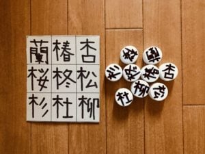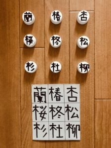 ペットボトルキャップに書いた植物の漢字と合わせていきました